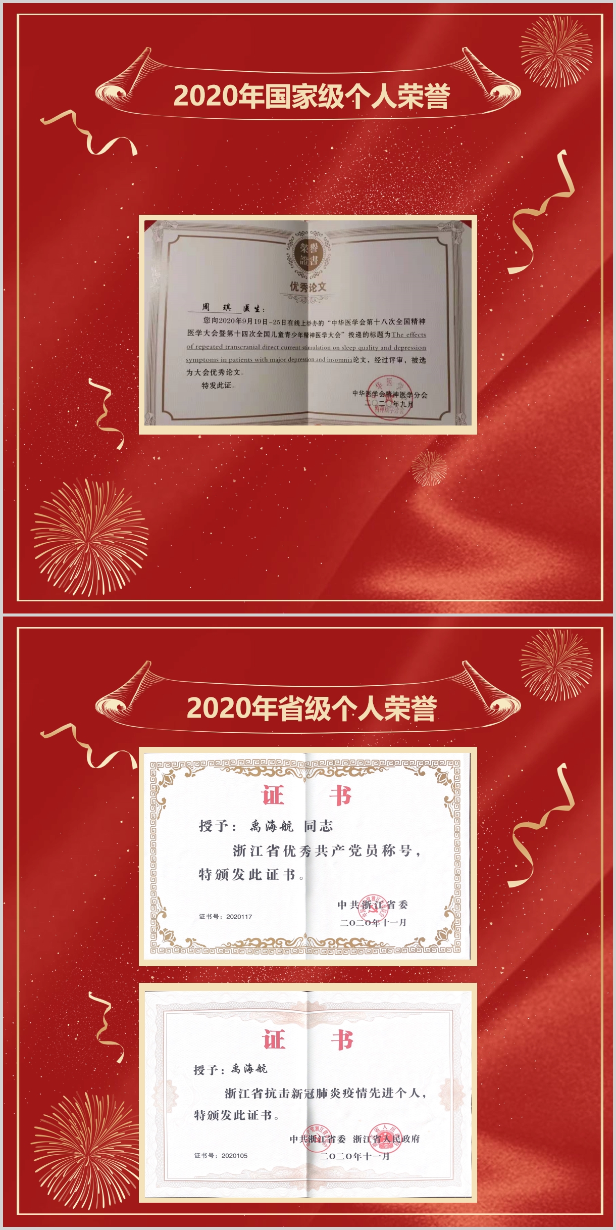 宁波市康宁医院2020年个人荣誉