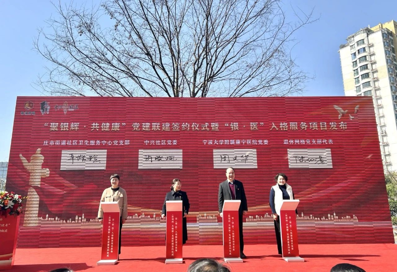 “要争做党建指导员,积极进行红色宣讲,引导社区群众感党恩、听党话、跟党走……”启动仪式上,中兴社区代表钱叶宣读专项行动方案。随后,党建联建签约仪式举行,“聚银辉·共健康”党建联建暨“银·医”入格服务项目内容发布,三位医院代表进行项目领办并领取入格聘书。仪式结束后,宁波大学附属康宁医院神经内科主任史玲利还为在场群众带来《和失眠说再见》健康讲座,并为市民提供健康咨询以及义诊服务。